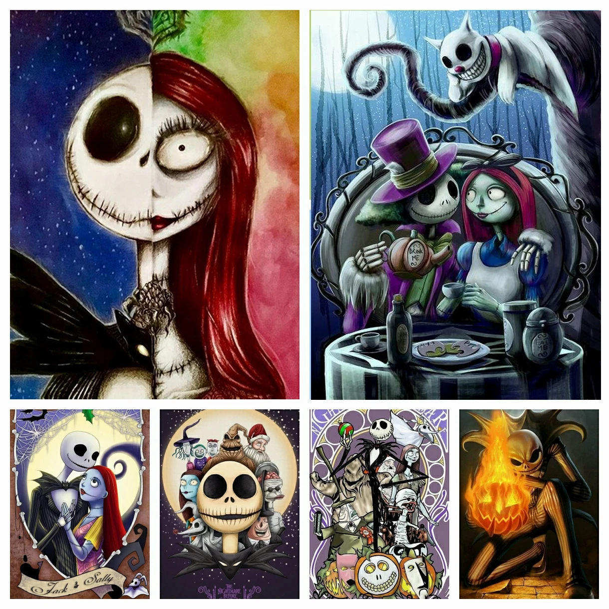 Nightmare Before Christmas Jack And Sally Disney Cartoon 5d Diy Diamond Painting Cross Stitch Rhinestones Child S Birthday Gift Aliexpress